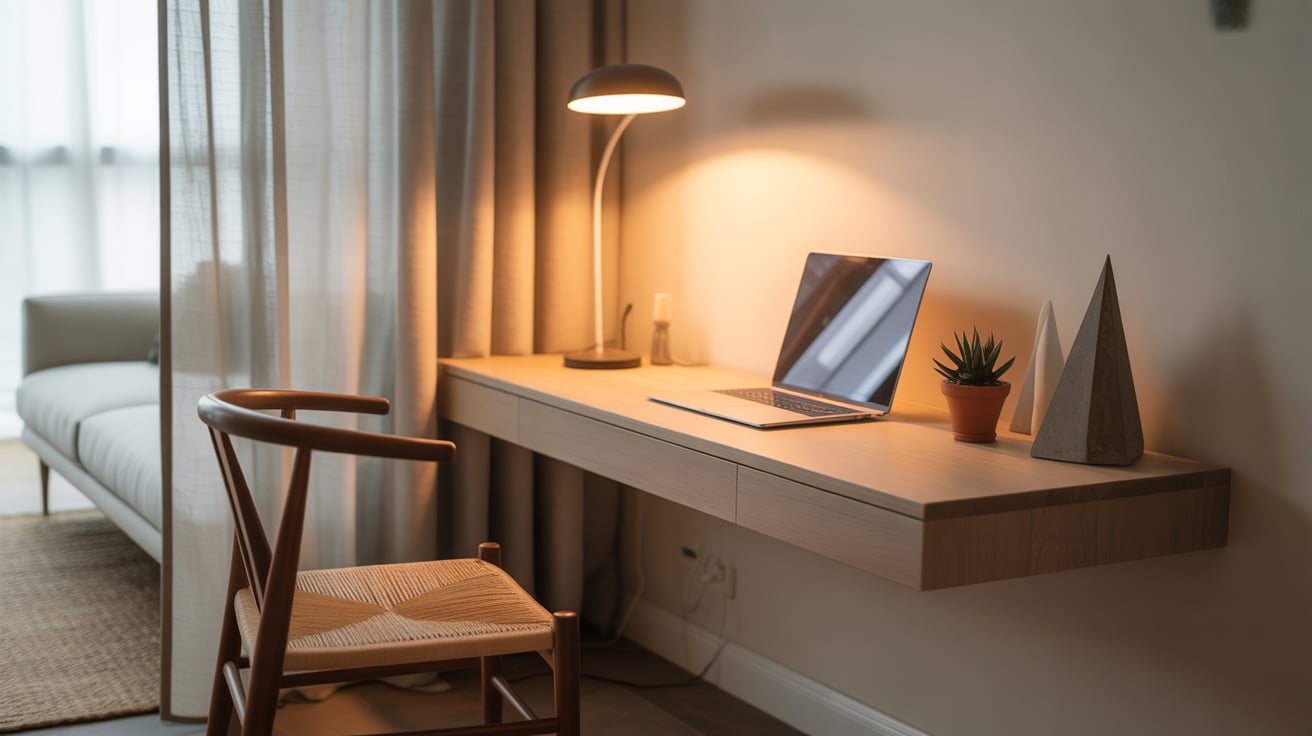 I learned the hard way that desks can dominate small spaces. A wall-mounted desk saved me from tripping over my own furniture. It’s sleek, space-efficient, and gives me a dedicated workspace without compromising the living area.