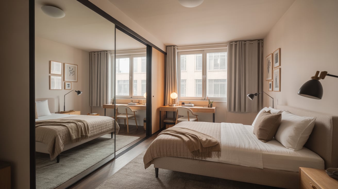 Mirrors work because they create the illusion of depth, making your studio feel more spacious. A full-length mirror or a mirrored wardrobe can serve both functional and aesthetic purposes.