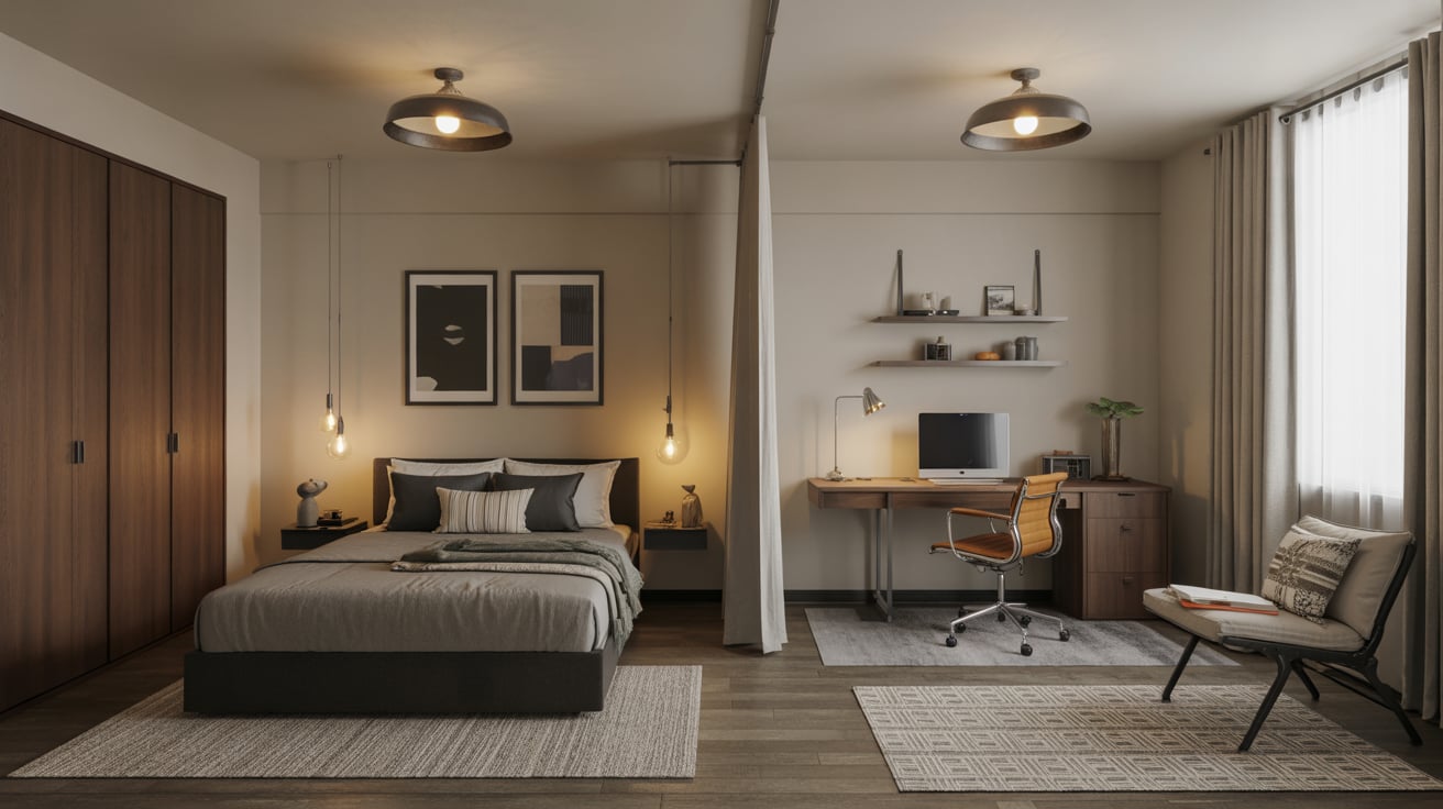 Layered lighting works because it highlights zones, adds depth, and makes small spaces feel dynamic. Adjustable lights can adapt to different activities like working, reading, or relaxing. The right lighting can make even the tiniest studio feel welcoming.