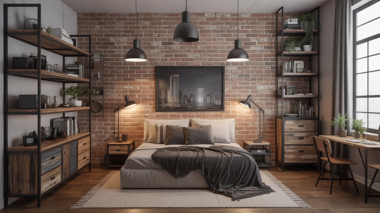 I fell in love with industrial style when I first walked into a loft with exposed pipes and brick walls. Adding metal shelving, raw wood furniture, and black accents instantly gave my studio a rugged, masculine feel. It’s perfect for men who want style without too much fuss.