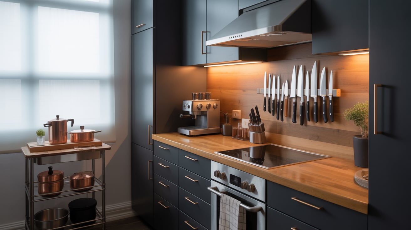 Cooking in a tiny studio can be tricky — I once had to balance pots on the floor because my counter space was full. Compact kitchen solutions like rolling carts, magnetic strips, and foldable tables made everything easier.