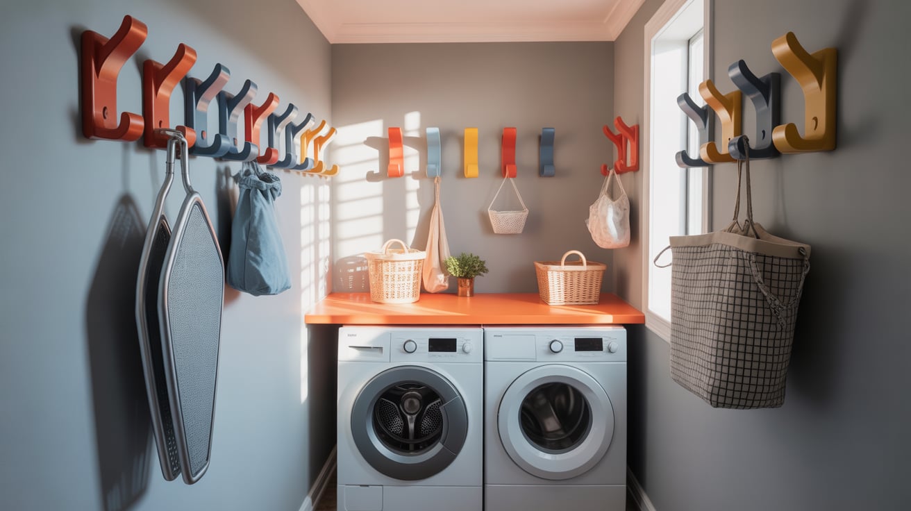 I used to pile laundry bags and ironing boards in corners. Installing decorative hooks solved the mess instantly.