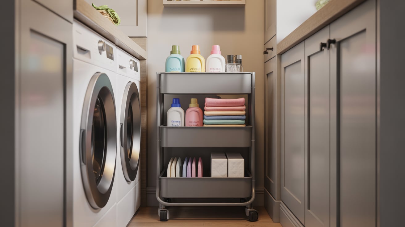 I remember trying to squeeze all my laundry supplies into one cabinet—disaster! That’s when I discovered slim rolling carts that slide into narrow spaces.