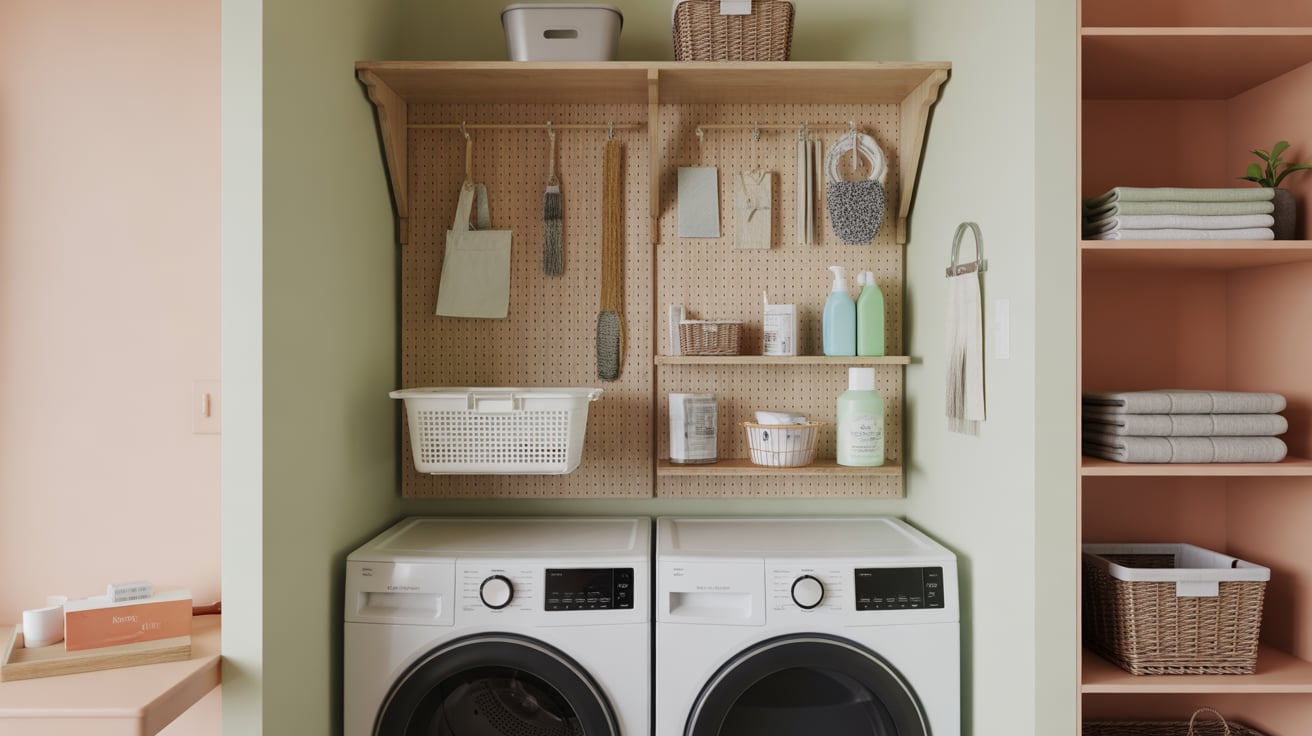 I had small laundry essentials scattered everywhere until I discovered pegboards. It’s amazing how organized a wall can look!
