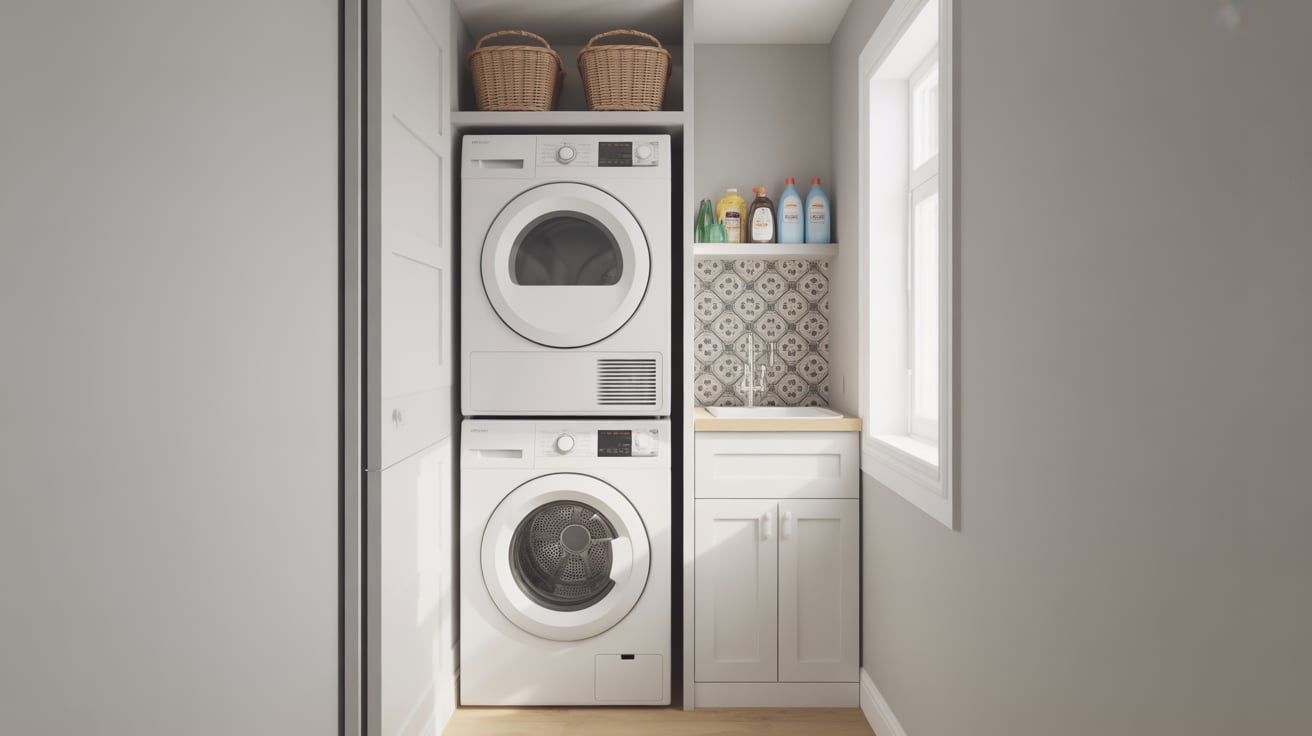 Stackable units are perfect for small laundry rooms because they maximize vertical space and free up the floor for counters or shelves.