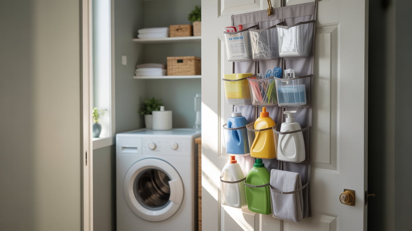 In my first tiny laundry nook, I had no room for extra storage. Over-the-door organizers became my lifesaver.