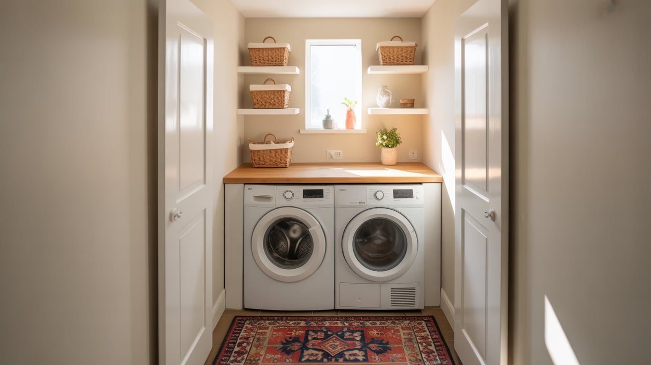 A small laundry room doesn’t mean it has to be boring. I added a vibrant rug, and suddenly the space felt cozy and stylish.