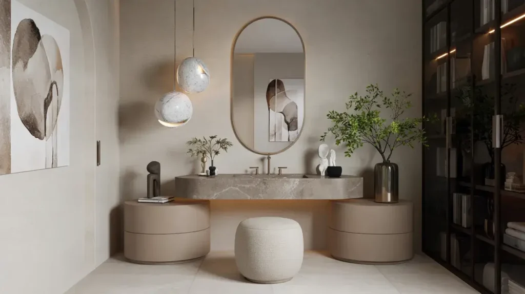 Some vanity tables just sit there. Others make statements. A sculptural stone top vanity falls firmly in the second category—this is furniture as art, and it transforms your entire bedroom aesthetic.