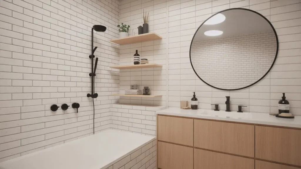 Here’s how you maximize your budget: do the tile installation yourself if you’re handy (YouTube is your friend), shop sales and clearance sections, keep the layout simple to minimize waste and cutting, and splurge selectively on just one or two special elements. Maybe you save on tiles but get that fancy rain showerhead you’ve been eyeing, or you do all the painting yourself but hire out the tile work.