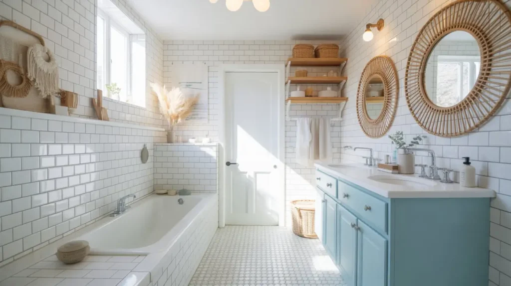 Beach vibes in your bathroom? Yes, please. White subway tiles are perfect for creating that breezy, coastal aesthetic that makes you feel like you’re on vacation even when you’re just brushing your teeth before work.
